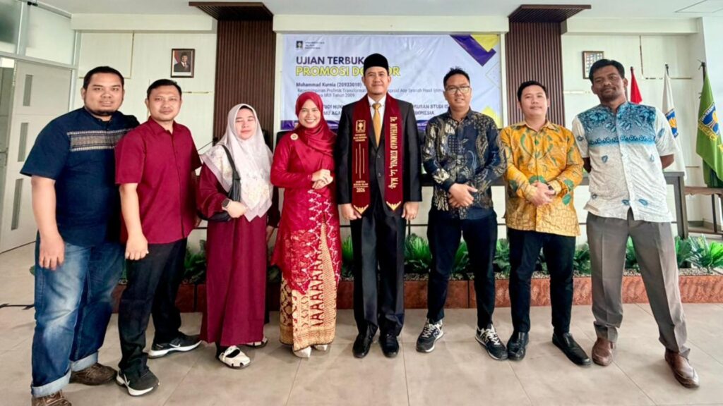Yogyakarta, Swarnaberita.com – Dr. K.H. Muhammad Kurnia, Lc., M.H.I., Da’i sekaligus Dosen Universitas Bangka Belitung, resmi meraih gelar doktor pada Program Studi Hukum Islam Program Doktor Fakultas Ilmu Agama Islam (FIAI) Universitas Islam Indonesia (UII) Yogyakarta. Ia berhasil mempertahankan disertasinya dalam Sidang Terbuka dan Promosi Doktor yang digelar pada Rabu, 7 Januari 2025, di Lantai 3 Gedung KH. Wahid Hasyim FIAI UII.